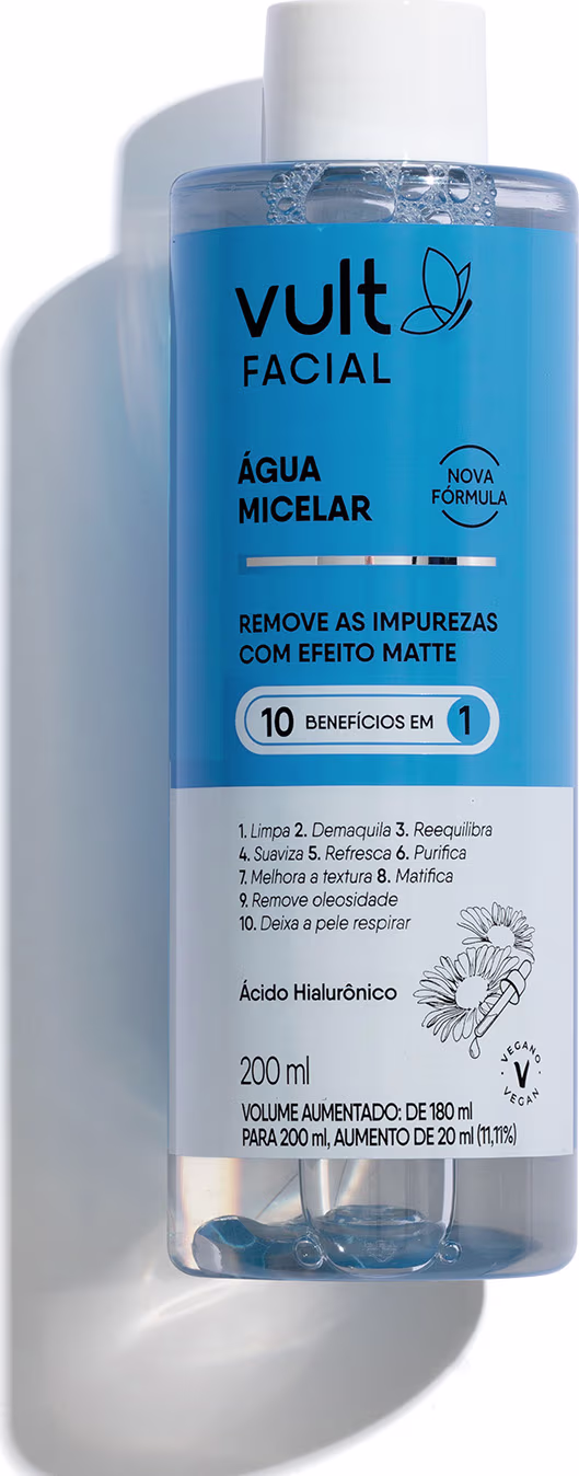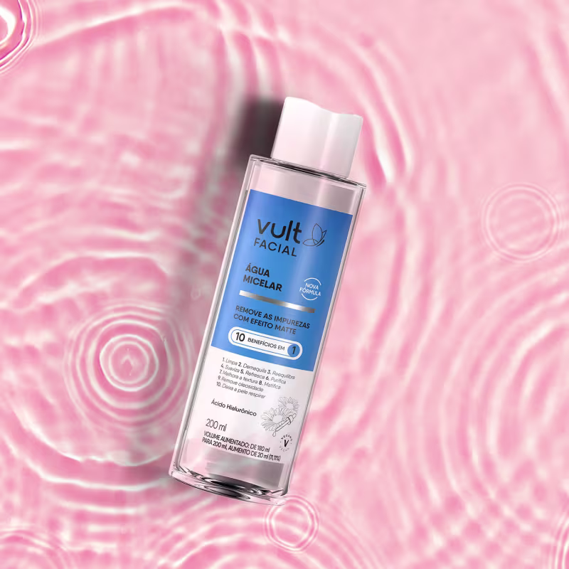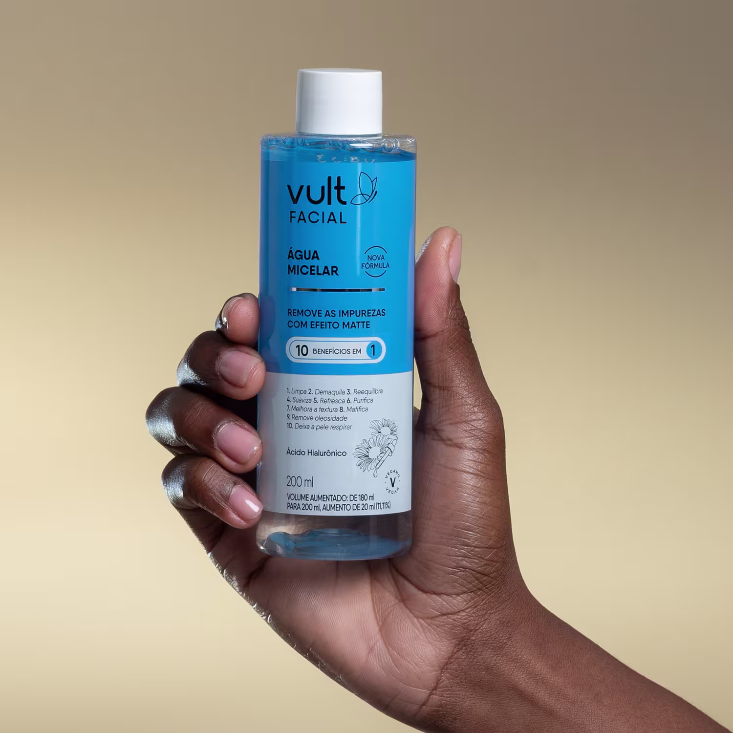 Essencial para completar seu skincare diário, a Água Micelar 10 em 1 de Vult Facial foi pensada para proporcionar uma rotina de cuidados faciais mais prática para todos os tipos de pele.
