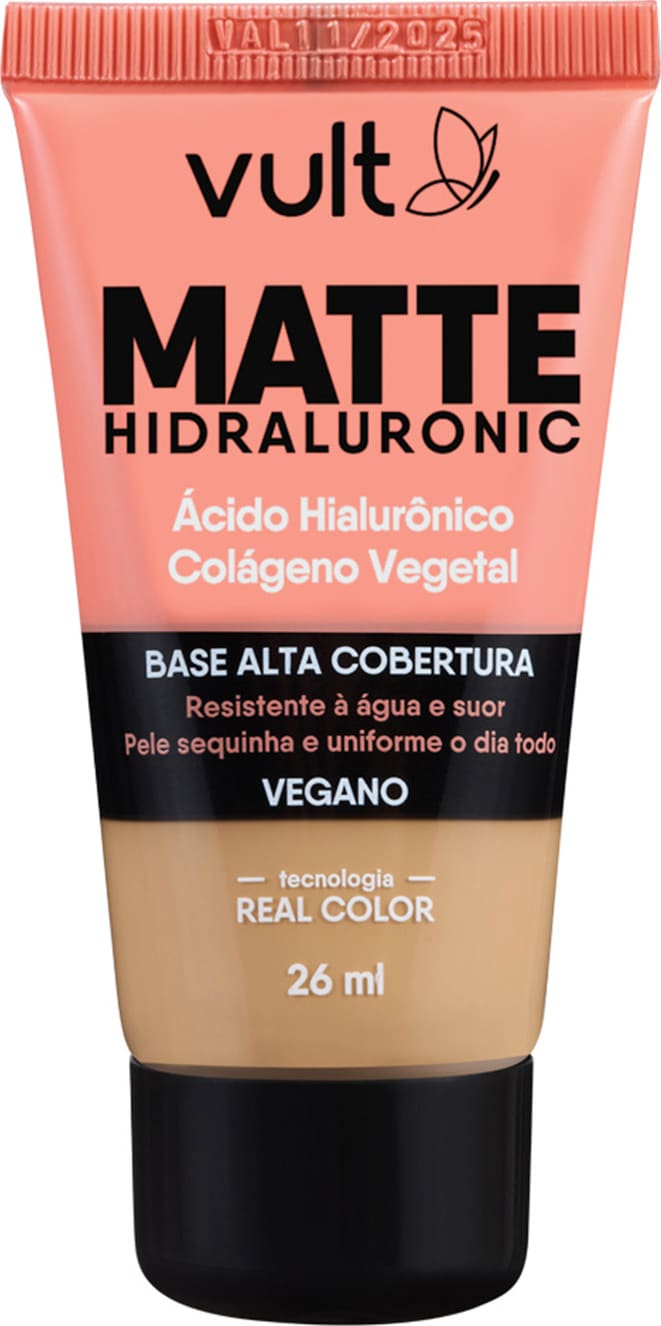 Inovadora, a Base Matte Hidraluronic V270 contém Ácido Hialurônico, conhecido por deixar aquela sensação de pele hidratada, e Colágeno Vegetal garantindo alta cobertura e efeito matte confortável que não resseca a pele.