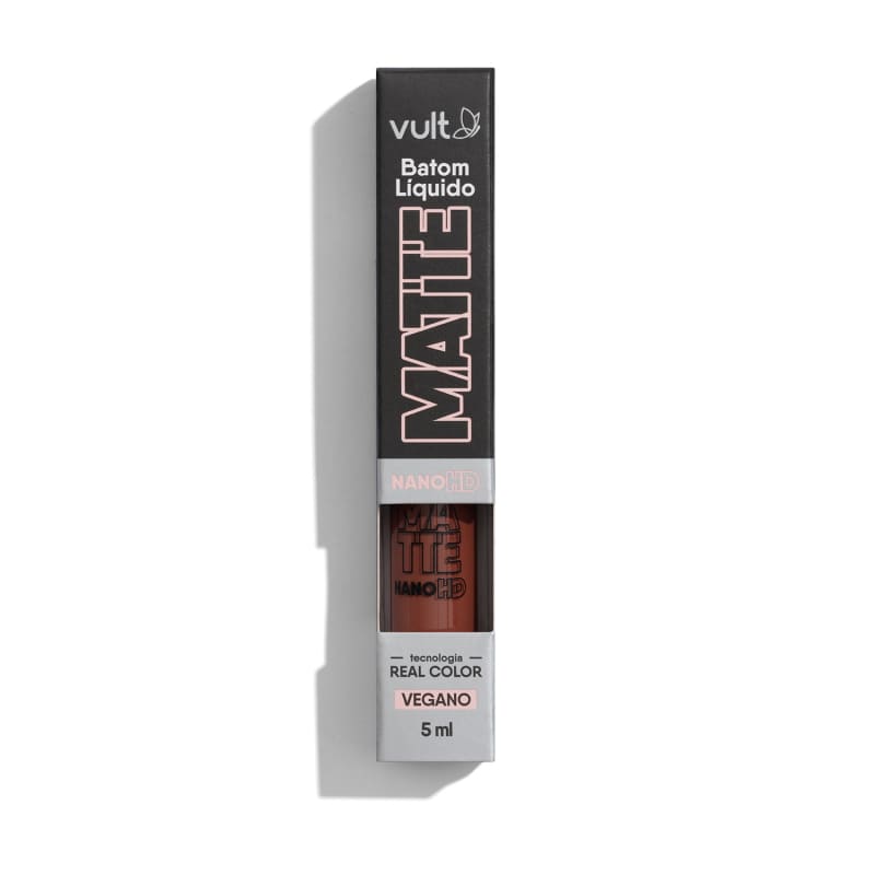 O novo Batom Líquido Matte Marrom Castanho Escuro Vult Nano HD garante alta pigmentação e Efeito matte super confortável de longa duração para seus lábios.