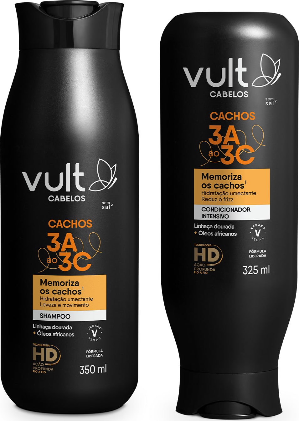 Combo Vult Cabelos Cachos 3A a 3C: Shampoo 350ml + Condicionador 325ml