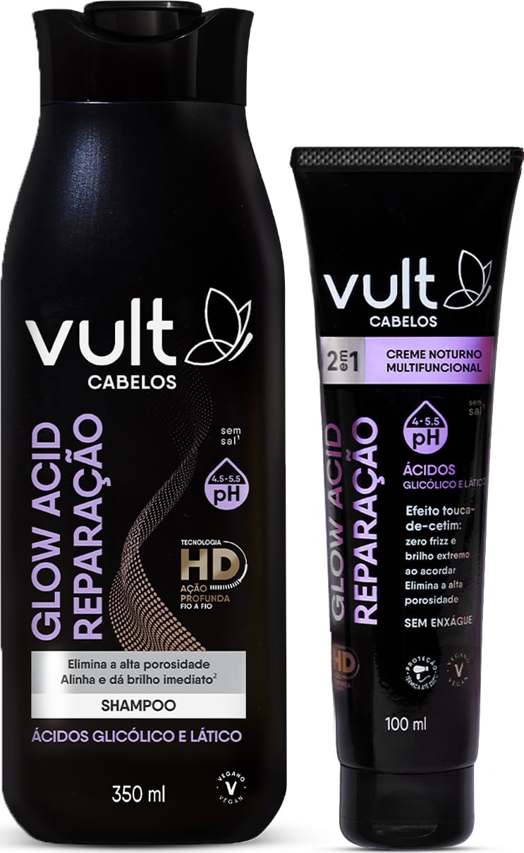 Combo Vult Glow Acid Reparação: Shampoo 350ml + Creme Capilar 100ml