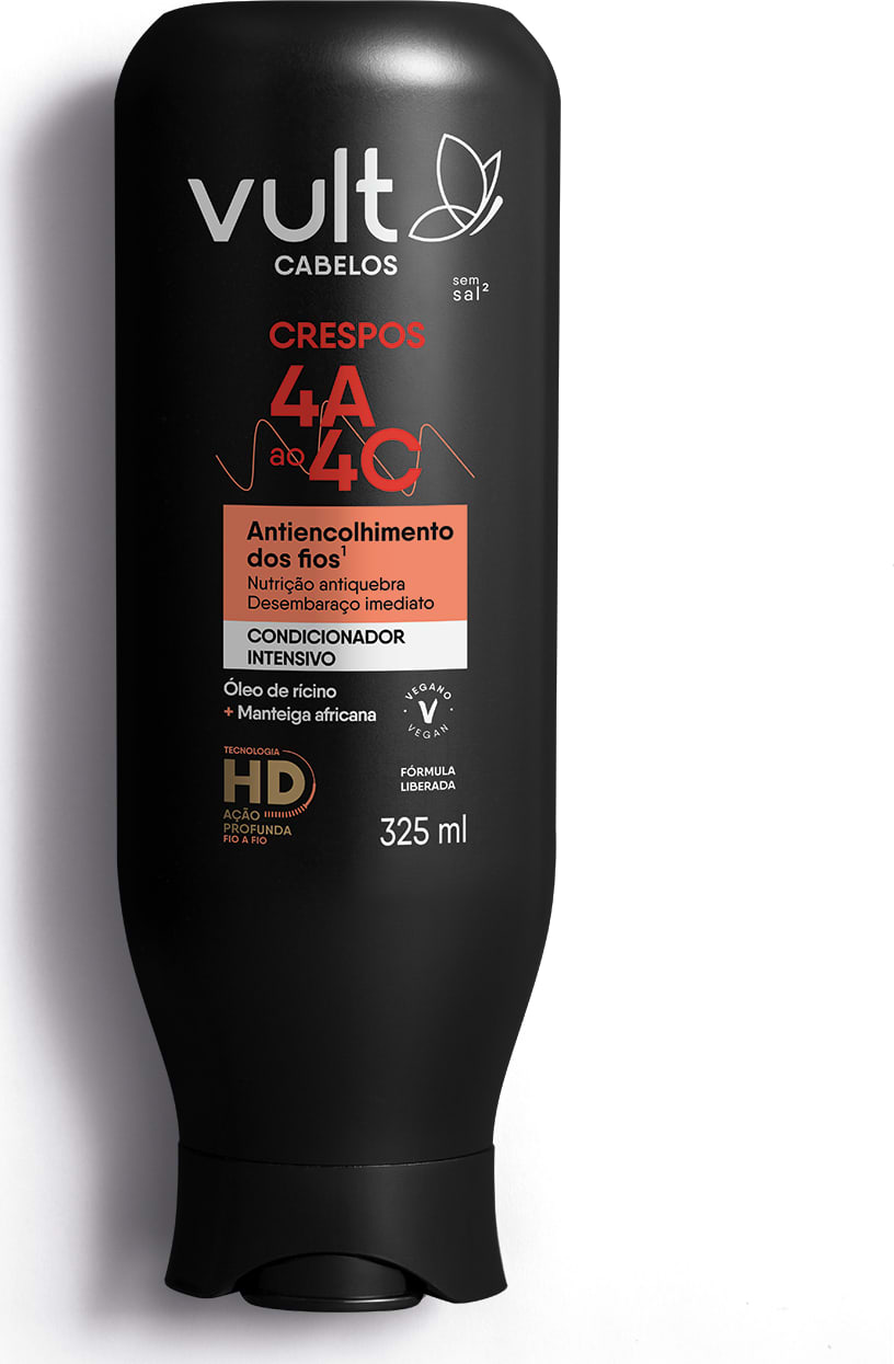 O Condicionador Intensivo Vult Cabelos Crespos 4A a 4C reduz o ressecamento e hidrata o cabelo desde a 1° aplicação.Sua fórmula confere desembaraço imediato e resgata o brilho de cabelo saudável e nutrido.