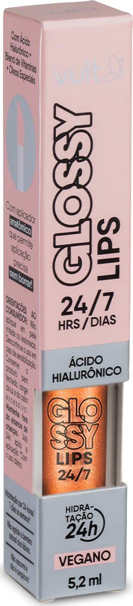 O novo Gloss Labial Pérola Cintilante Glossy Lips 24/7 Vult entrega cor e hidratação profunda para os lábios.