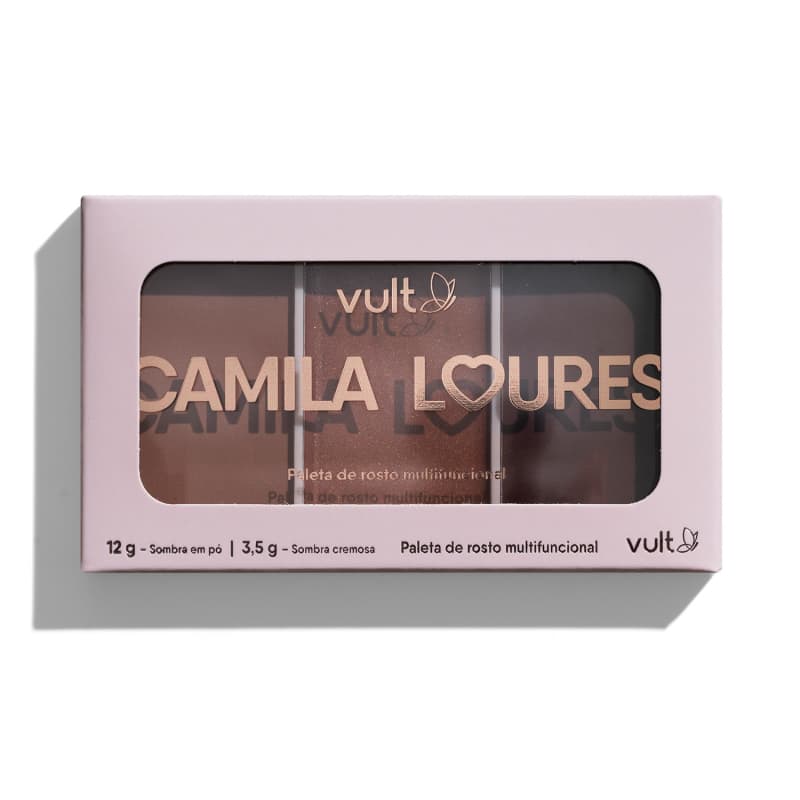 Em edição limitada, a Paleta de Rosto Multifuncional Camila Loures vai valorizar a sua make com modernidade e atitude. Super versátil, ela possui 3 tons diferentes, que pigmentam diversos tons de pele, sendo 2 cores em pó com acabamento matte aveludado, e 1 cor cremosa com partículas de brilho sofisticadas. Você pode combinar os tons à vontade nos olhos e no rosto!