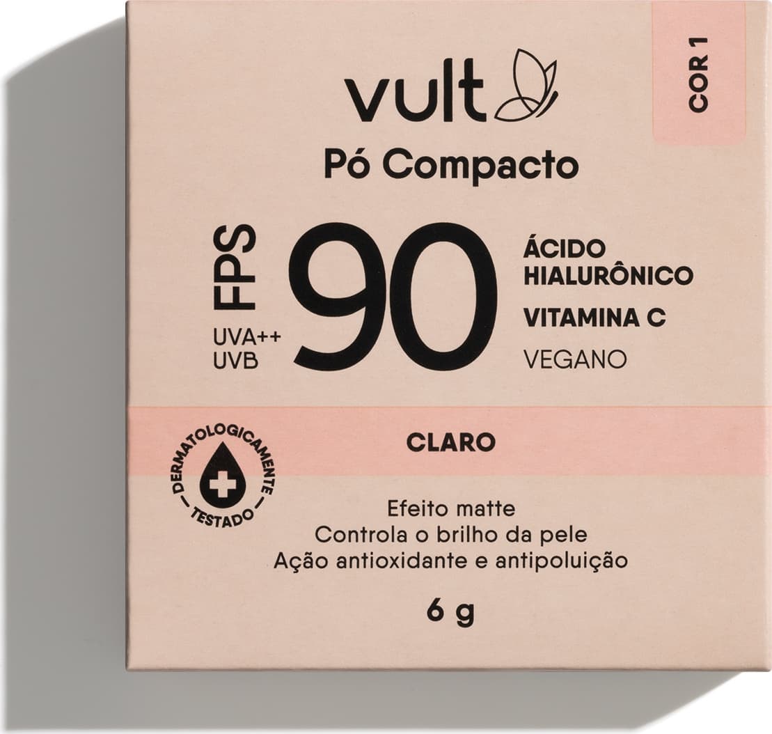 O Pó Compacto Facial Claro Cor 1 FPS 90 Vult era o que faltava na sua rotina para finalizar e retocar a make com precisão, proteção e beleza.