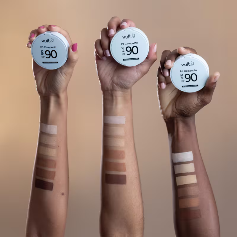 Este pó compacto Vult FPS 90 possui proteção UVA++ e UVB, cobertura média alta e efeito mate antibrilho, que proporcionam uma pele com acabamento natural e uniforme.