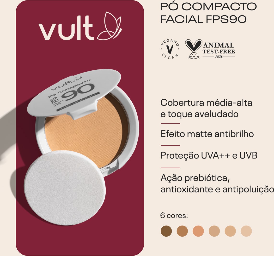 O Pó Compacto Vult Médio Escuro Cor 4 é um pó facial FPS 90 feito para finalizar e retocar a make com precisão, proteção e beleza.