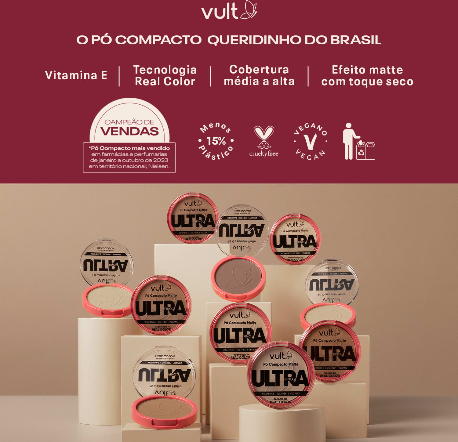 *Pó Compacto mais vendido em farmácias e perfumarias de janeiro a outubro de 2023 em território nacional; Nielsen.