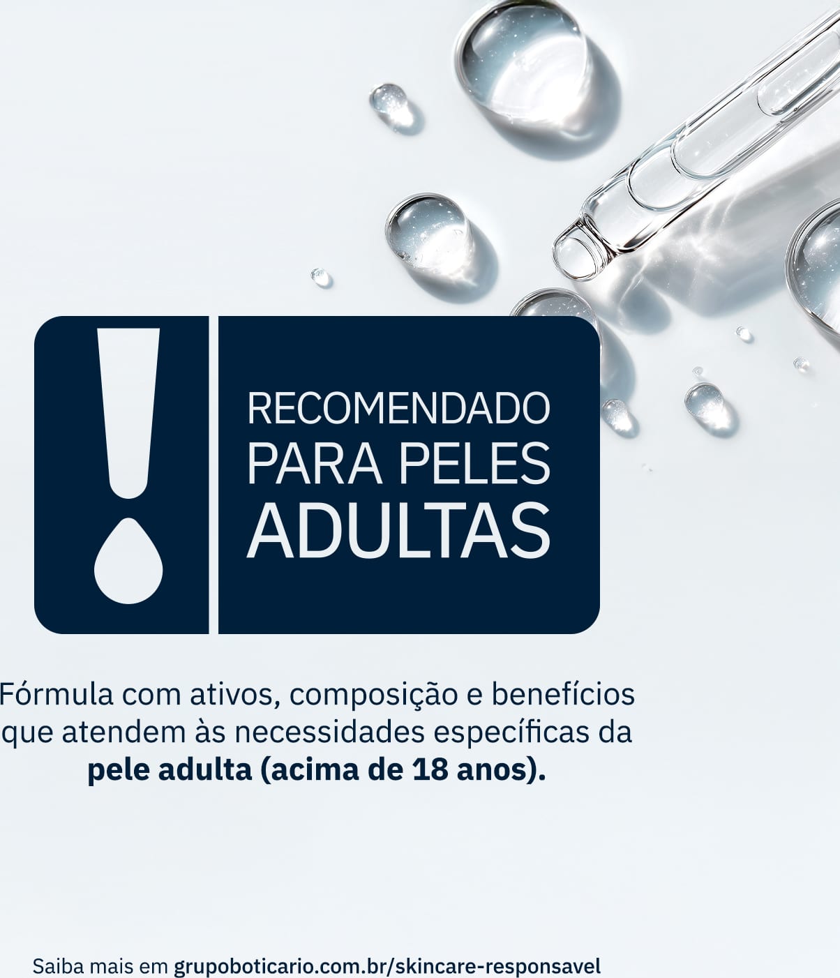 Recomendado para peles adultas: fórmula com ativos, composição e benefícios que atendem às necessidades específicas da pele adulta (acima de 18 anos).