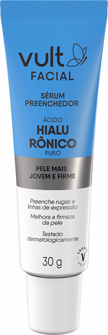 Este Sérum Ácido Hialurônico Vult Facial possui fórmula com Ácido Hialurônico Puro apresenta alta absorção na pele, sendo reconhecido por alto efeito hidratante que preenche rugas e linhas de expressão.