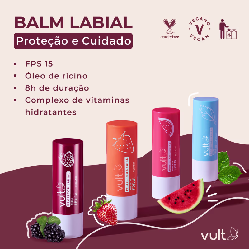 O Protetor Labial Vult realça a beleza natural que você já tem. Tudo isso com um cheirinho agradável que revitaliza os sentidos. Vale a pena ter esse cuidado diariamente!