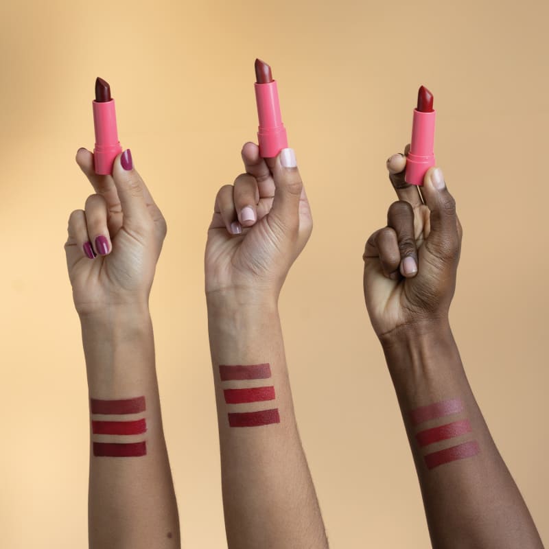O item foi desenvolvido com Óleo de Rícino, Ácido Hialurônico e Vitamina E. Estes ativos repõem a hidratação perdida, mantêm os lábios protegidos do ressecamento e ainda previnem o envelhecimento precoce. Assim, o batom entrega mais do que uma maquiagem, ele oferece um cuidado suave que deixa os lábios com aparência saudável.