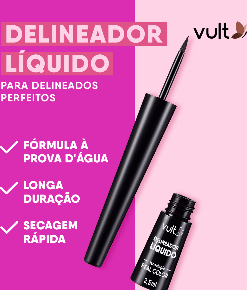 O Delineador Líquido Preto é aquele produto que não pode faltar na coleção de quem ama makes com delineado e olhos em destaque. O produto entrega um traço intenso e resistente de maneira prática.