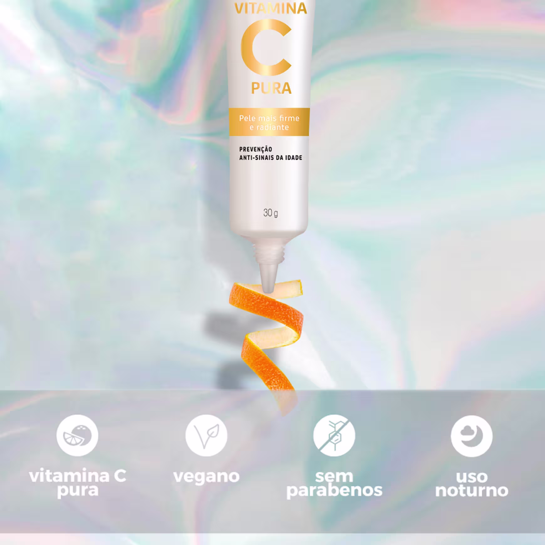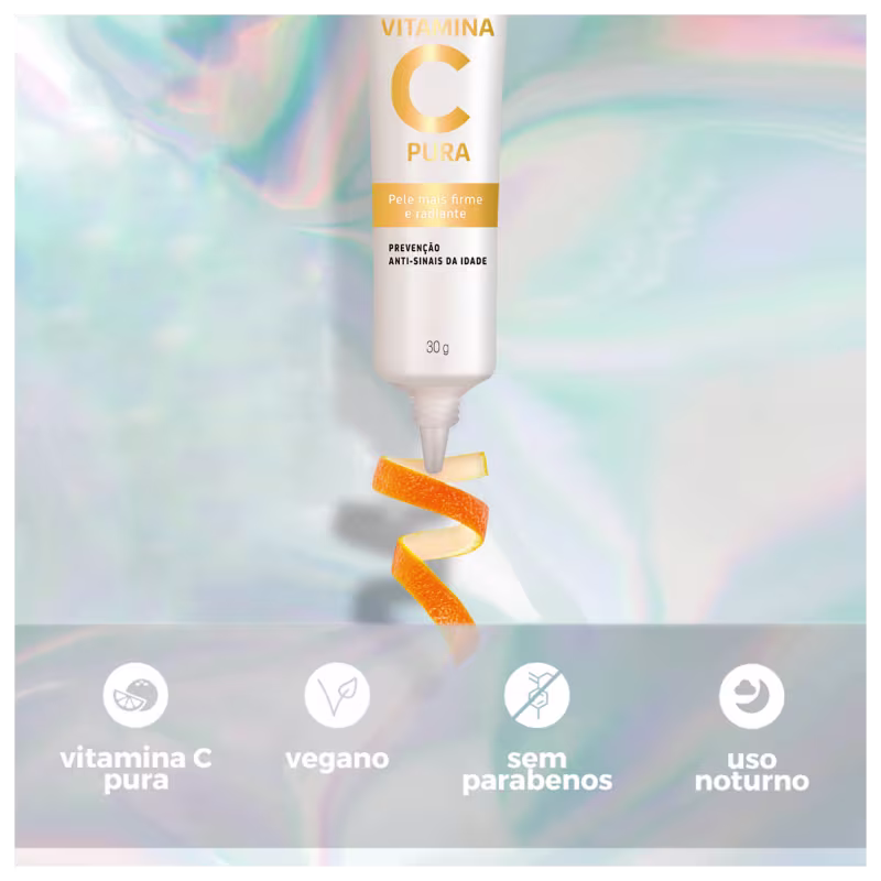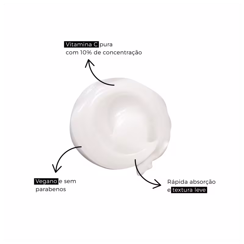 Tudo isso graças à Vitamina C Pura (10%), ativo famoso por sua ação rejuvenescedora. Assim, o produto consegue reduzir a aparência de linhas finas, atrasar o surgimento dos sinais de idade e devolver o brilho natural da pele.