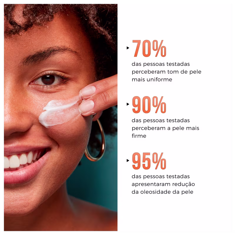 Além disso, esta Vitamina C ajuda no controle da oleosidade e também impede a obstrução dos poros por ter uma fórmula livre de óleo. Assim, a pele fica equilibrada em vários aspectos, com uma aparência saudável por completo.